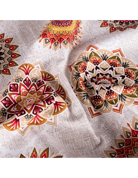 Composition: 50% polyester, 50% cotton. Uses: Curtains, blinds, cushions, bedspreads, summer stretcher clothes, tablecloths. Width: 2.80.