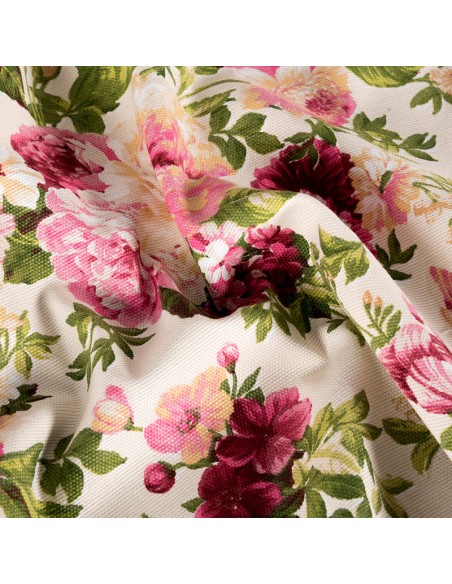 Composición: 50% poliéster, 50% algodón. Usos: cortinas, estores, cojines, manteles. Ancho: 1.40