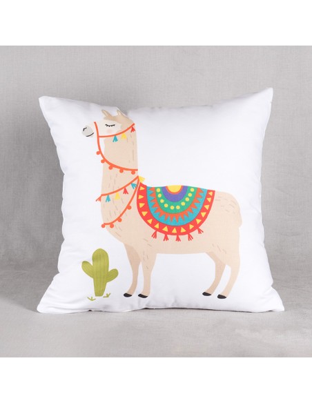 Funda de cojín de loneta alf. Estampado de llama. Tamaño: 42x42,con cremallera. Relleno no incluido.